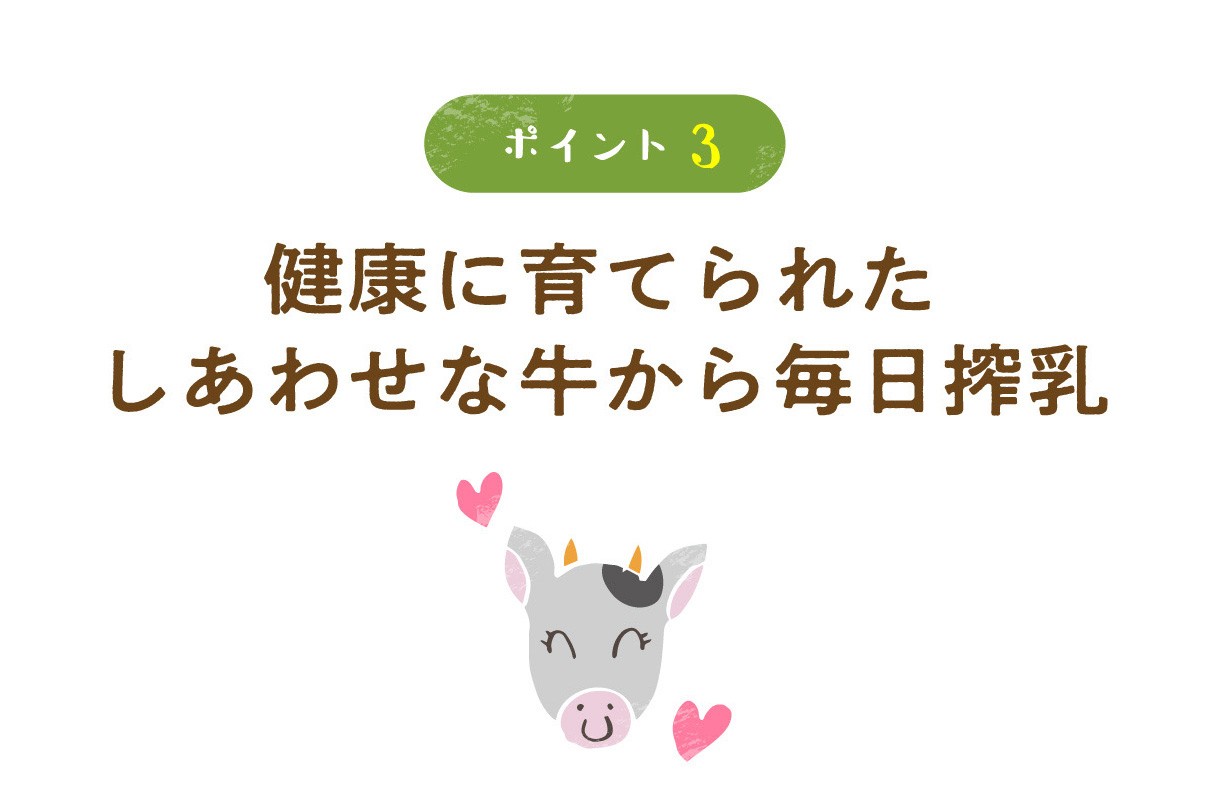 北海道十勝の5戸の酪農家に限定し、えさはすべて非遺伝子組み換え(分別管理)※1 のものを使用。